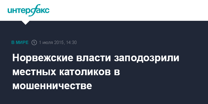 Москва. 1 июля. INTERFAX.RU - Норвежские власти подозревают местную епархию Римской католической церкви в мошенничестве, сообщает "Би-Би-Си".