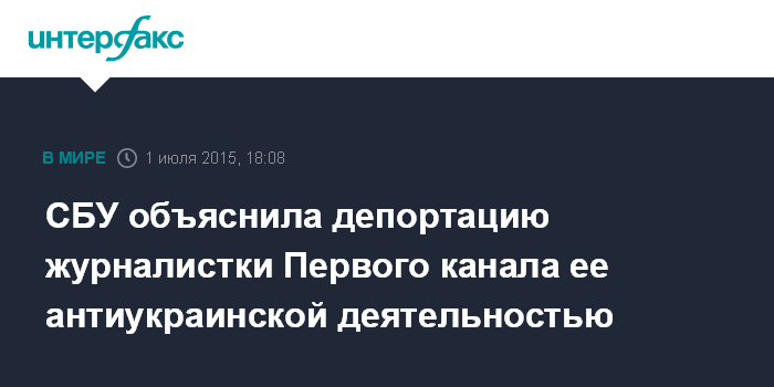 Москва. 1 июля. INTERFAX.RU - Служба безопасности Украины депортировала из страны корреспондента российского "Первого канала" Александру Черепнину за антиукраинскую деятельность.