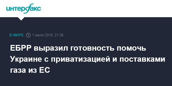 Москва. 1 июля. INTERFAX.RU - Европейский банк реконструкции и развития (ЕБРР) готов рассмотреть предложения Киева о помощи в проведении приватизации и поставках природного газа из Евросоюза, сообщил президент банка Сума Чакрабарти журналистам в Киеве в среду по итогам встречи с президентом и премьером страны.