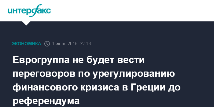 Еврогруппа не будет вести переговоров по урегулированию финансового кризиса в Греции до референдума