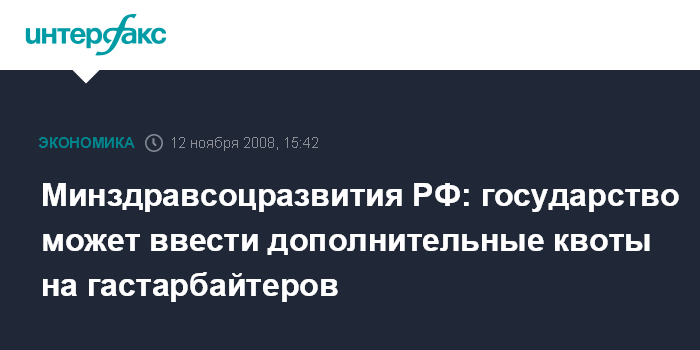 Минздравсоцразвития РФ: государство может ввести дополнительные квоты на гастарбайтеров