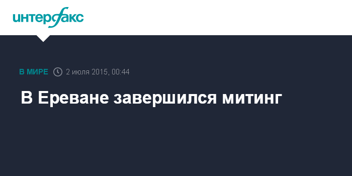 Москва. 2 июля. INTERFAX.RU - Демонстрация в центре Еревана завершилась, люди расходятся с проспекта Баграмяна.