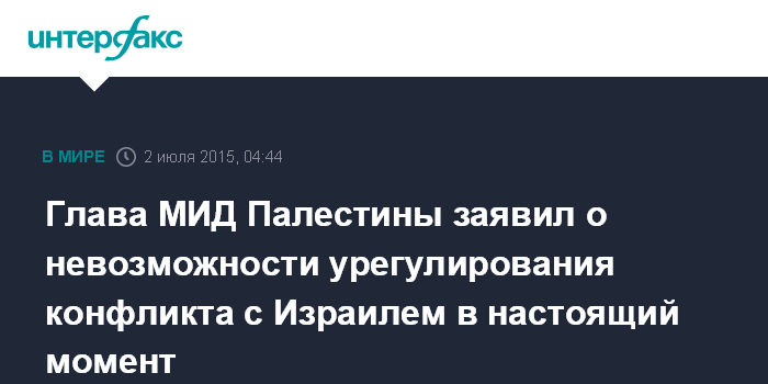 Глава МИД Палестины заявил о невозможности урегулирования конфликта с Израилем в настоящий момент