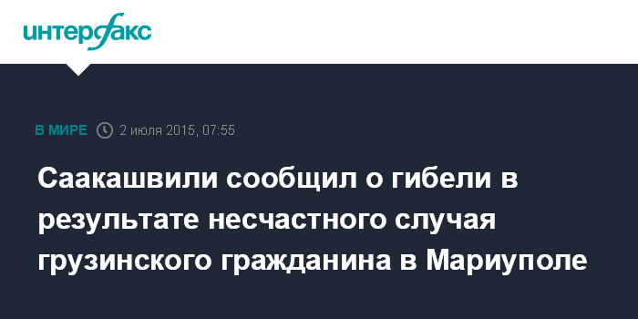 Москва. 2 июля. INTERFAX.RU - Глава Одесской областной государственной администрации, бывший президент Грузии Михаил Саакашвили сообщил о гибели в результате несчастного случая грузинского гражданина в Мариуполе.