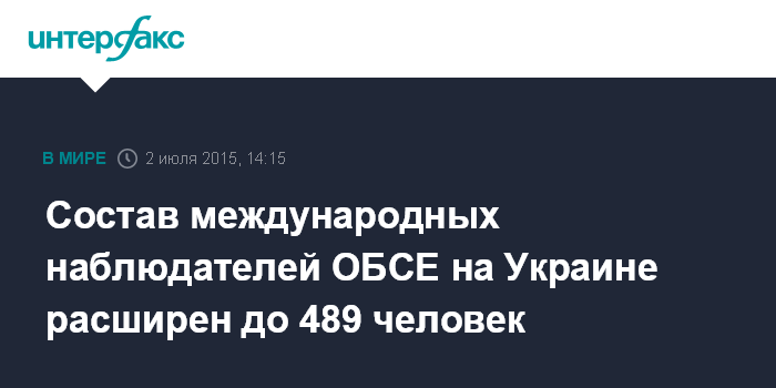 Москва. 2 июля. INTERFAX.RU - Количество наблюдателей специальной мониторинговой миссии ОБСЕ (СММ) на Украине достигло 489 человек, сообщил замглавы миссии Александр Хуг.
