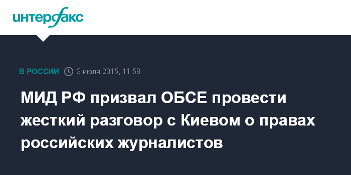 МИД РФ призвал ОБСЕ провести жесткий разговор с Киевом о правах российских журналистов