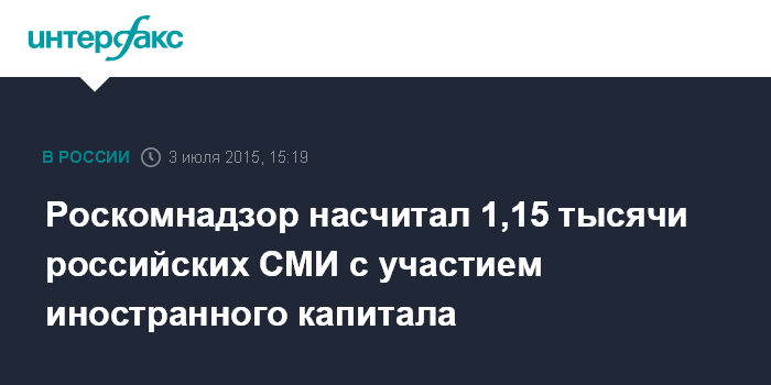 Роскомнадзор насчитал 1,15 тысячи российских СМИ с участием иностранного капитала