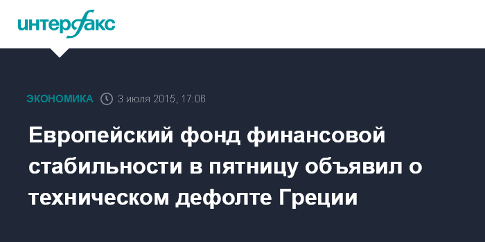 Европейский фонд финансовой стабильности в пятницу объявил о техническом дефолте Греции
