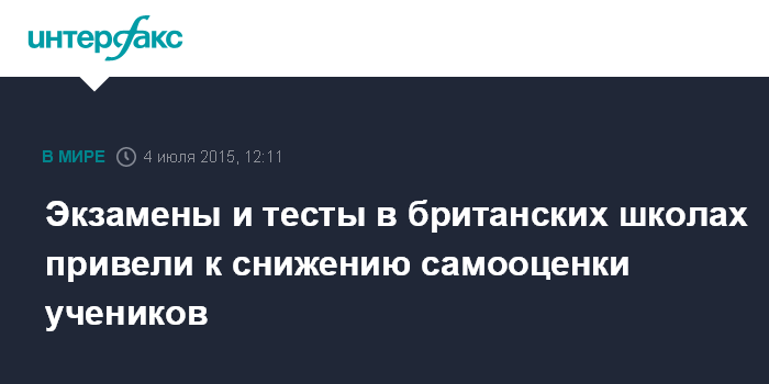 Москва. 4 июля. INTERFAX.RU - Слишком высокие требования на экзаменах и тестах в школах Великобритании вредят психическому здоровью учеников. Об этом свидетельствует доклад Национального союза учителей, который был составлен на основе опроса 8 тыс. британских работников образовательной системы, сообщает BBC News.