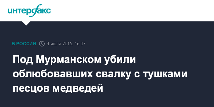 Москва. 4 июля. INTERFAX.RU - Сотрудникам Госохотнадзора Мурманской области пришлось застрелить троих медведей, которые повадились приходить за едой на свалку в поселок Пушной (Кольский район, Мурманская область), сообщила пресс-служба регионального Минприроды.