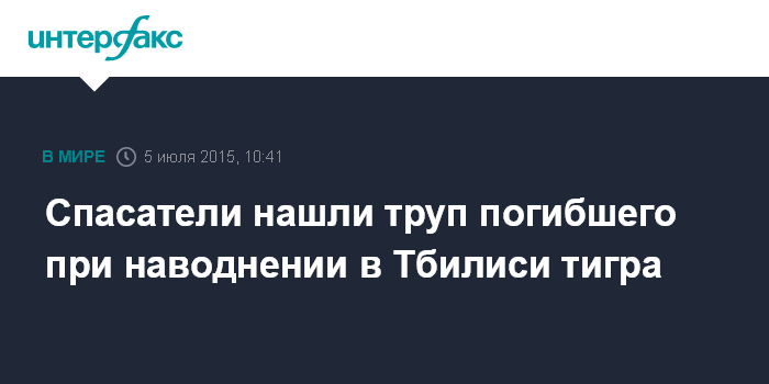 Как сообщил журналистам директор департамента по чрезвычайным ситуациям МВД Грузии Звиад Кацашвили, предположительно, это тигр, пропавший из зоопарка во время разрушительного наводнения, произошедшего в грузинской столице 14 июня.