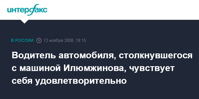 Водитель автомобиля, столкнувшегося с машиной Илюмжинова, чувствует себя удовлетворительно
