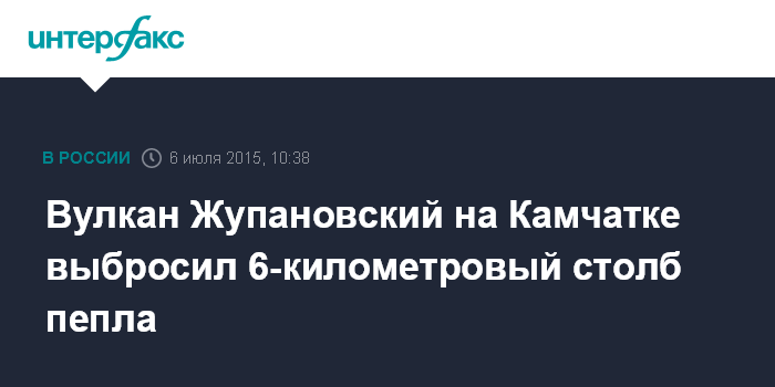Москва. 6 июля. INTERFAX.RU - Вулкан Жупановский, извергающийся на Камчатке, выбросил столб пепла высотой около 6 км над уровнем моря, сообщил агентству "Интерфакс" в понедельник представитель Камчатского филиала Геофизической службы РАН.