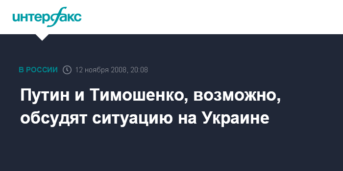 Москва. 12 ноября. INTERFAX.RU - Премьер-министр РФ Владимир Путин "на полях" Совета глав правительств СНГ в Молдавии 14 ноября обсудит со своей украинской коллегой Юлией Тимошенко вопросы внутриполитической ситуации на Украине и сотрудничества в газовой сфере, заявил замруководителя аппарата правительства РФ Юрий Ушаков.