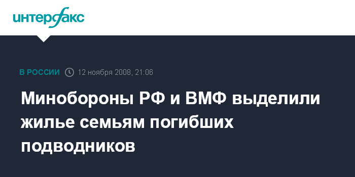"В настоящее время министерством обороны РФ и Военно-Морским флотом семьям погибших подводников выделено жилье в ближнем Подмосковье", - сообщил "Интерфаксу" в среду помощник главкома ВМФ капитан первого ранга Игорь Дыгало.