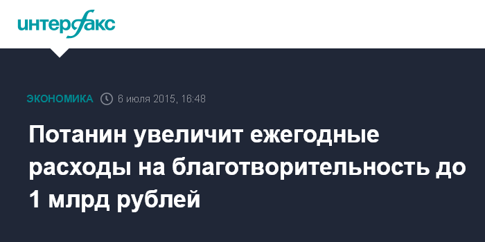 Потанин увеличит ежегодные расходы на благотворительность до 1 млрд рублей