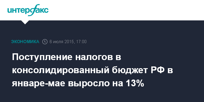 Поступление налогов в консолидированный бюджет РФ в январе-мае выросло на 13%