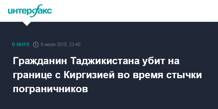 Москва. 6 июля. INTERFAX.RU - В районе таджикского анклава Ворух в Киргизии в понедельник вечером произошел инцидент с участием пограничников обеих республик, в результате которого был убит гражданин Таджикистана.