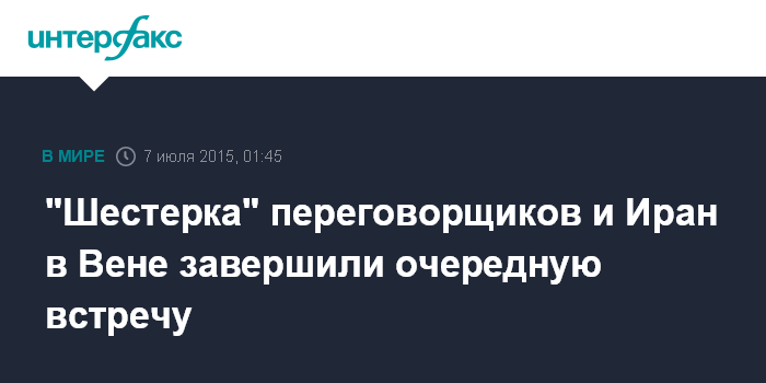 Москва. 7 июля. INTERFAX.RU - В Вене завершилась вторая за день встреча глав МИД Ирана и "шестерки" по иранской ядерной программе (ИЯП), сообщил "Интерфаксу" источник, близкий к переговорам. Встреча проходила закрытыми дверями и продолжалась более двух часов.