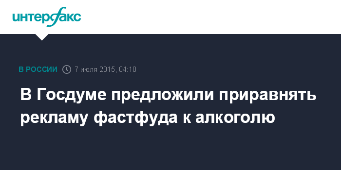 В Госдуме предложили приравнять рекламу фастфуда к алкоголю