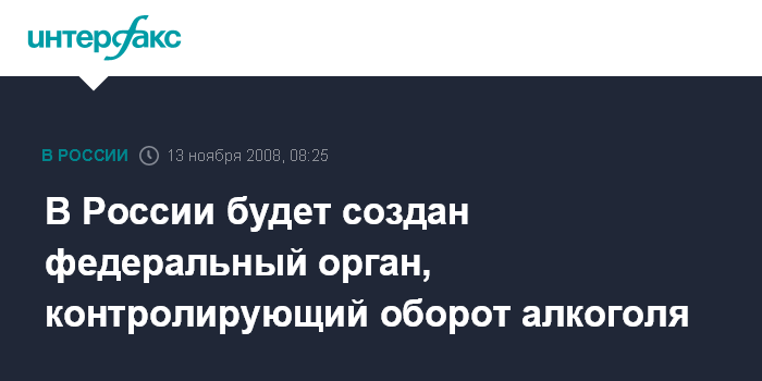 Москва. 13 ноября. INTERFAX.RU - Создается федеральная служба по контролю за оборотом алкогольной продукции в РФ, сообщил журналистам первый вице-премьер Виктор Зубков. Производители алкоголя поддерживают это решение.