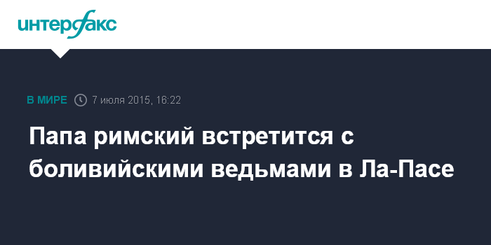 Москва. 7 июля. INTERFAX.RU - Во время визита в Боливию папа римский Франциск намерен посетить административный центр страны город Ла-Пас, известный магазинчиками, работники которых практикуют языческие обряды.