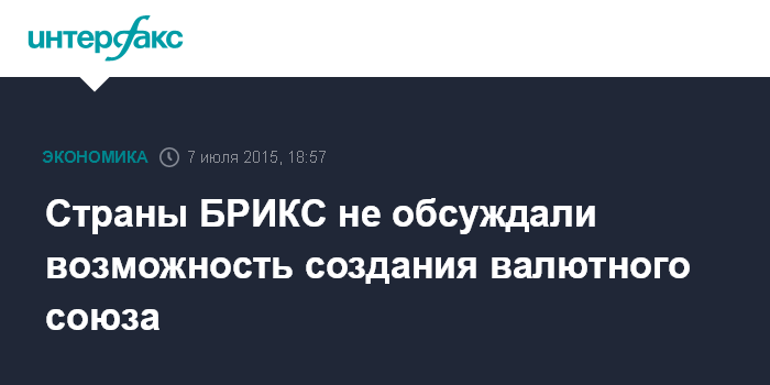 Страны БРИКС не обсуждали возможность создания валютного союза
