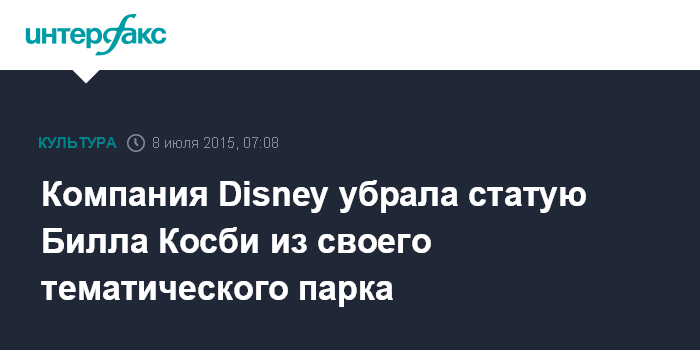 Москва. 8 июля. INTERFAX.RU - Компания Disney убрала скульптурное изображение комика Билла Косби из своего тематического парка в Голливуде после обвинений в преступлениях на сексуальной почве, сообщила в среду газета Orlando Sentinel.
