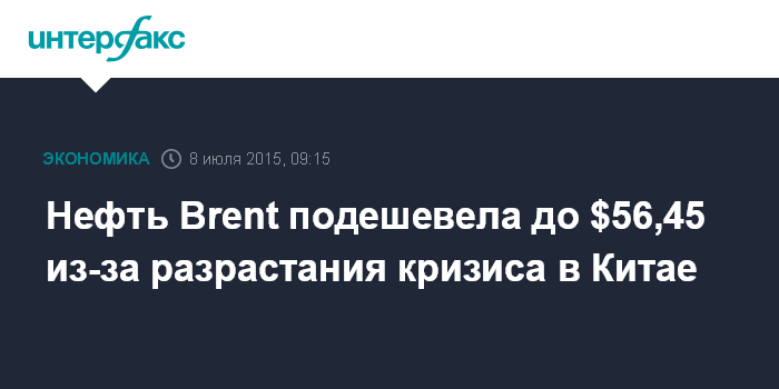 Нефть Brent подешевела до $56,45 из-за разрастания кризиса в Китае