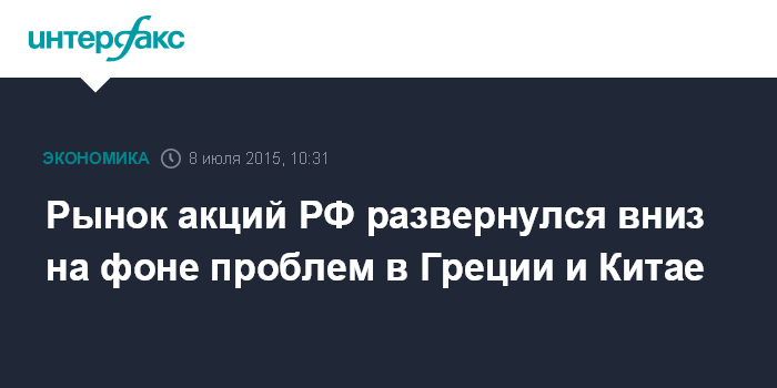 Рынок акций РФ развернулся вниз на фоне проблем в Греции и Китае