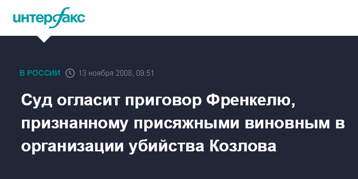 Суд огласит приговор Френкелю, признанному присяжными виновным в организации убийства Козлова