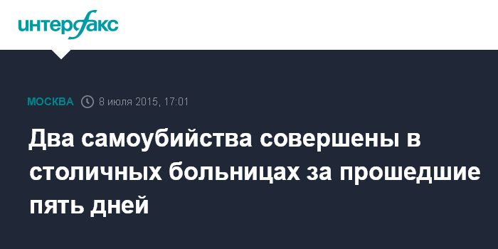 Два самоубийства совершены в столичных больницах за прошедшие пять дней