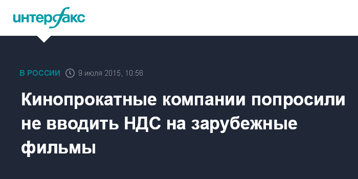 В четверг крупнейшие кинопрокатные сети России объединились и написали письмо главе государства с просьбой убедить правительство не вводить НДС на иностранное кино. Ранее предложение о введении такого налога высказал председатель правительства РФ Дмитрий Медведев. Министр культуры РФ Владимир Мединский его поддержал.