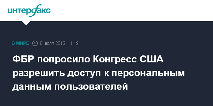 ФБР попросило Конгресс США разрешить доступ к персональным данным пользователей