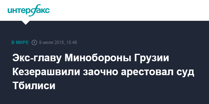 Москва. 9 июля. INTERFAX.RU - Тбилисский городской суд постановил заочно взять под стражу бывшего министра обороны Грузии Давида Кезерашвили, обвиняемого в насильственном захвате бизнеса в 2010 году.