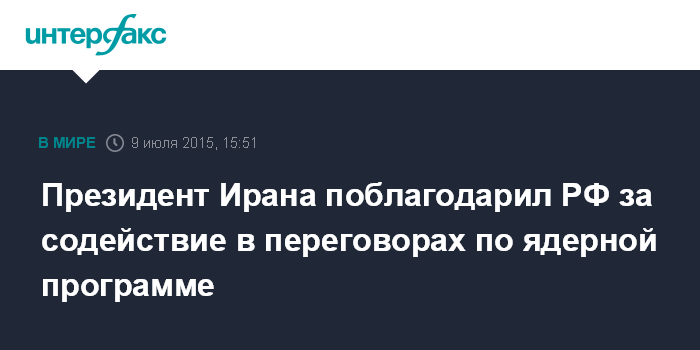 Москва. 9 июля. INTERFAX.RU - Президент Ирана Хасан Рухани поблагодарил президента РФ Владимира Путина за усилия, предпринимаемые Москвой для урегулирования ситуации с иранской ядерной программой.