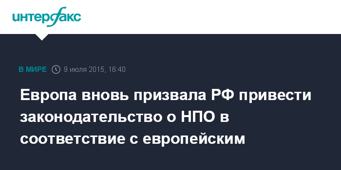 Европа вновь призвала РФ привести законодательство о НПО в соответствие с европейским