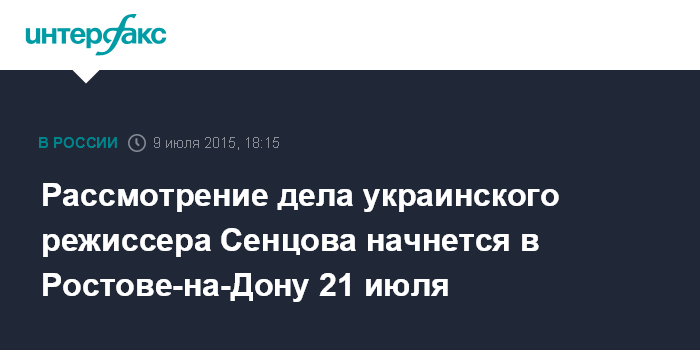 Москва. 9 июля. INTERFAX.RU - Северо-Кавказский окружной военный суд в Ростове-на-Дону 21 июля начнет рассмотрение дела о терактах в Крыму, одним из фигурантов которого является украинский режиссер Олег Сенцов.
