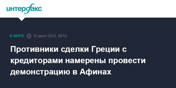 Противники сделки Греции с кредиторами намерены провести демонстрацию в Афинах