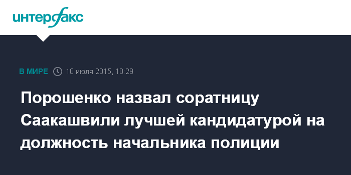 Москва. 10 июля. INTERFAX.RU - Президент Украины Петр Порошенко заявил, что заместитель министра внутренних дел Эка Згуладзе является наилучшей кандидатурой на должность начальника Национальной полиции Украины.