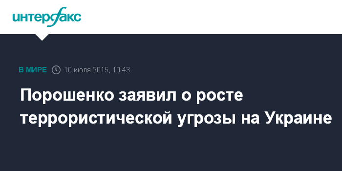 Москва. 10 июля. INTERFAX.RU - Президент Украины Петр Порошенко заявил, что в регионах Украины значительно возрос уровень террористической угрозы.