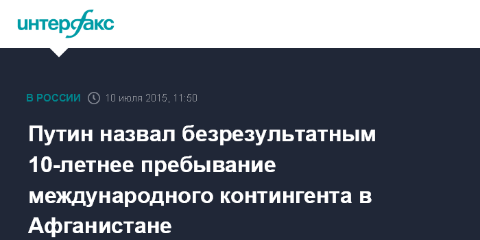"Десятилетнее пребывание международного военного контингента не принесло качественного улучшения ситуации. Положение дел усугубляет растущая активность так называемого Исламского государства - террористической организации, которая стремится распространить свое влияние", - сказал президент России Владимир Путин на заседании лидеров ШОС в расширенном составе в Уфе.