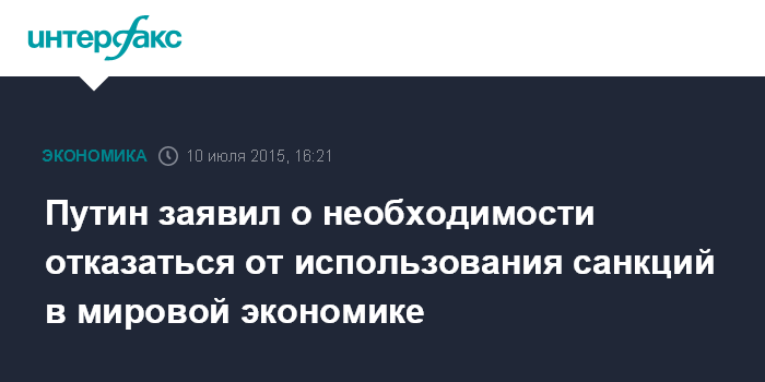 "Такой инструмент, как санкции, вообще должен быть изъят из международного экономического лексикона и общения и не должен использоваться в мировой экономике", - сказал Путин на пресс-конференции по итогам саммитов ШОС и БРИКС в Уфе.