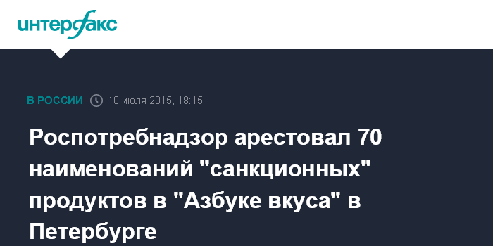Москва. 10 июля. INTERFAX.RU - Управление Роспотребнадзора по Петербургу выявило более 70 наименований запрещенных к ввозу в РФ "санкционных" продуктов в магазинах сети "Азбука вкуса".
