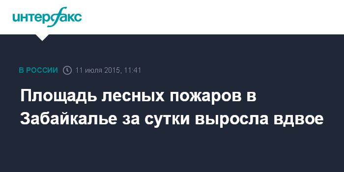 Москва. 11 июля. INTERFAX.RU - В Забайкальском крае на фоне жаркой погоды продолжает ухудшаться пожарная обстановка в лесах.