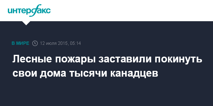 Москва. 12 июля. INTERFAX.RU - Лесные пожары, из-за которых выгорели огромные площади в западной части Канады, заставили тысячи местных жителей покинуть свои дома, сообщает Guardian.
