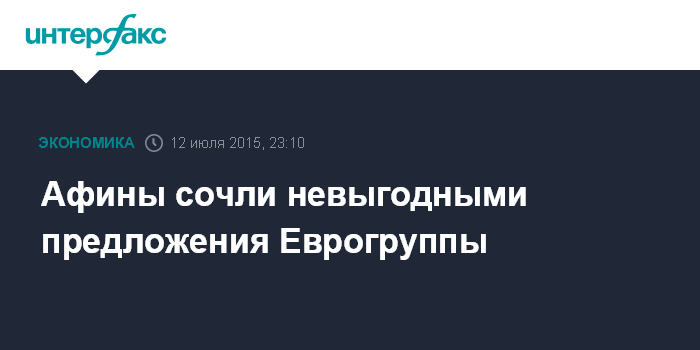 Москва. 12 июля. INTERFAX.RU - Правительство Греции назвало "очень плохими" предложения, выдвинутые Еврогруппой, сообщает в воскресенье французская газета Le Figaro.