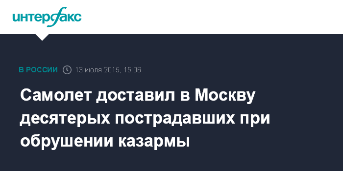 Самолет доставил в Москву десятерых пострадавших при обрушении казармы