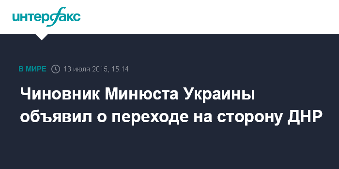 Москва. 13 июля. INTERFAX.RU - Бывший замначальника управления юстиции Донецкой области перешел на сторону самопровозглашенной Донецкой народной республики.
