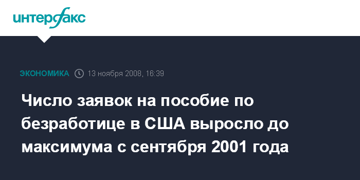 Число заявок на пособие по безработице в США выросло до максимума с сентября 2001 года